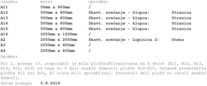 Plošča ni bila ponovno uporabljena. Dodatnih posegov pri plošči tako ni bilo.